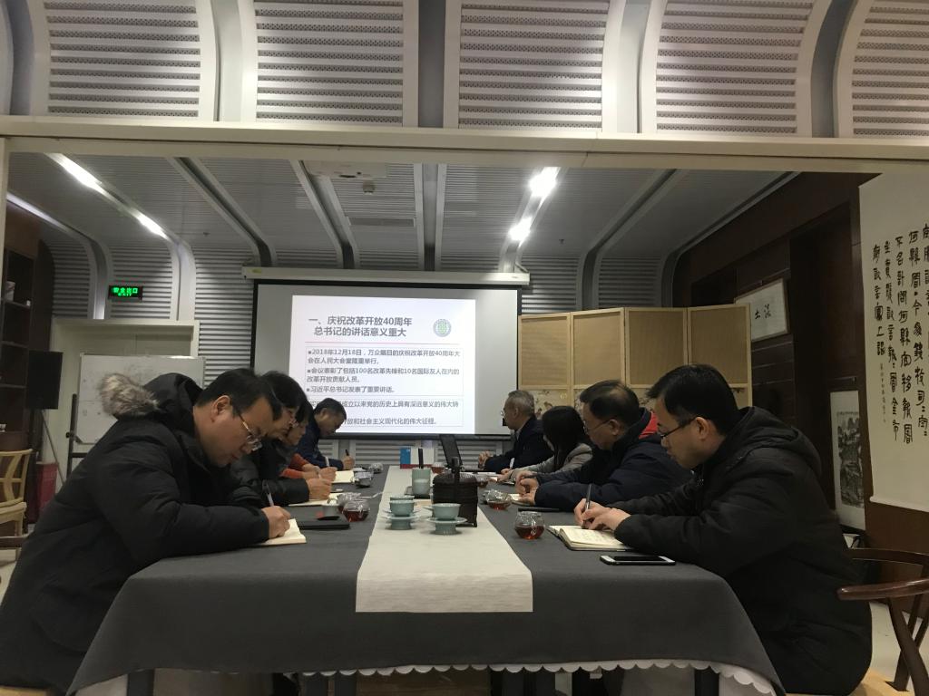 2018年12月18日,万众瞩目的庆祝改革开放40周年大会在人民大会堂隆重举行,会议表彰了包括100名改革先锋和10名国际友人在内的改革开放贡献人员,习近平总书记发表了重要讲话。在“庆祝改革开放40周年大会”主题学习阶段,赵中平带领大家从会议主题、重大意义、四个基于、两个伟大等多个方面一起温习了习近平总书记的重要讲话。与会同志一致表示,习近平总书记的讲话意义重大,改革开放是我们党的一次伟大觉醒,这个伟大觉醒孕育了我们党从理论到实践的伟大创造;改革开放是中国人民和中华民族发展史上一次伟大革命,这个伟大革命推动了中国特色社会主义事业的伟大飞跃!我们现在所处的,是一个船到中流浪更急、人到半山路更陡的时候,是一个愈进愈难、愈进愈险而又不进则退、非进不可的时候。我们纪念改革开放40周年的最好方式是继续推动思想解放,深化改革,扩大开放,将改革开放进行到底。