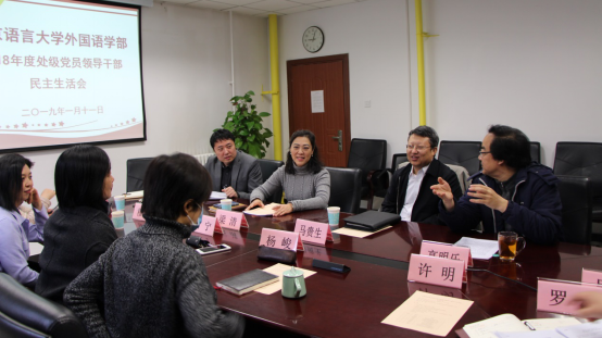 1月11日上午,外国语学部党委召开了2018年度处级党员领导干部民主生活会。学校党委副书记、纪委书记马贵生同志到会指导,学部党政领导班子全体成员参加会议,会议由学部党委书记梁清同志主持。