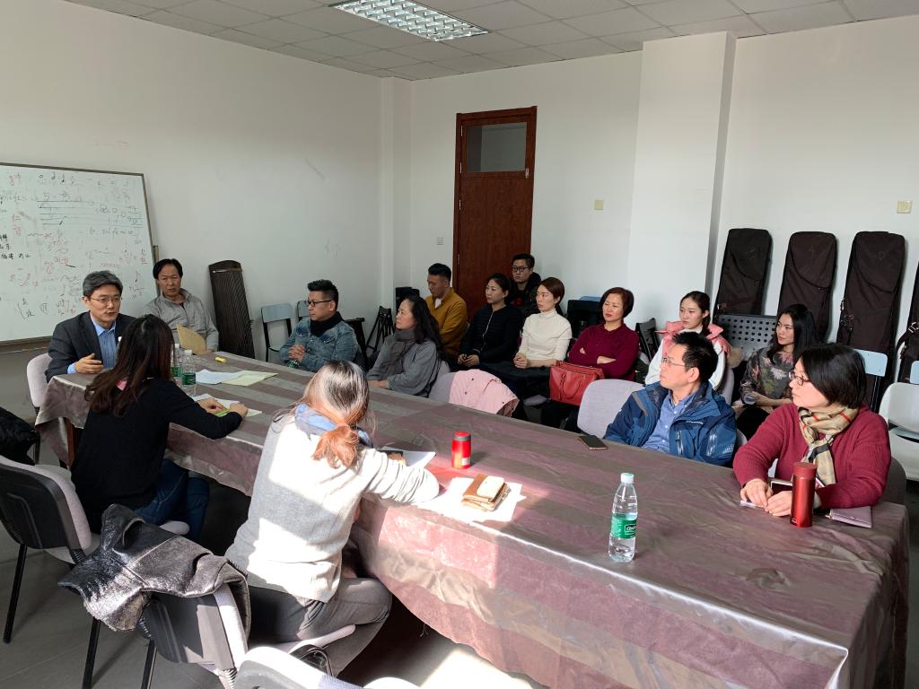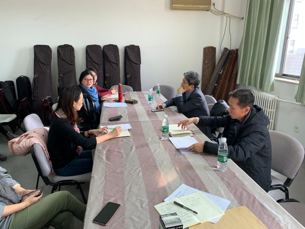 张宝钧副校长首先在主北446会议室与艺术学院领导及教师进行了交谈。艺术学院副院长刘山花代表学院感谢校领导对艺术学院工作的关心和指导以及各职能部门对我院工作的支持与帮助,并汇报了学院本学期的开学工作、学生报到情况、学院目前发展的困境和今后的发展思路等。艺术学院党总支书记陈霞汇报了学院整体情况,同时结合艺术类招生工作、教学硬件设施、科研申报、中外学生艺术课程等问题与张宝钧副校长及教务处李晓波副处长进行了交流沟通。