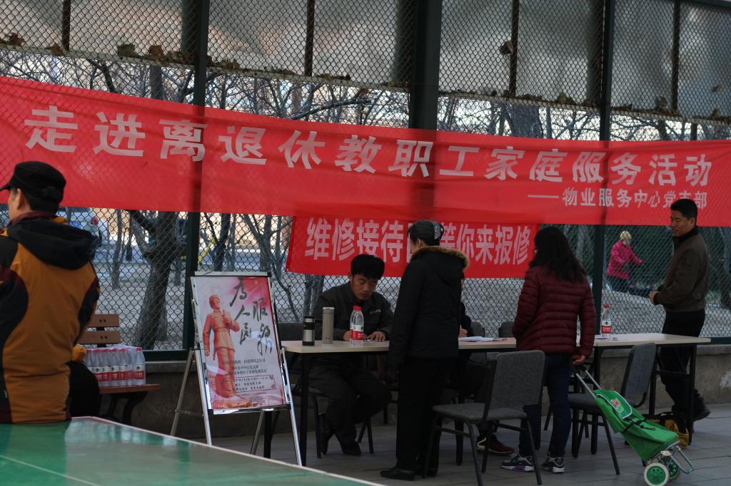 物业服务中心负责人表示,“开展本次活动最大的意义就是爱老敬老,而且今天是学雷锋日,我们更应该尽可能地帮助他们。另外这个活动也是‘两学一做’系列活动之一。这个活动在2012年被北京市教工委评为基层党组织创新案例三等奖,受到了北京市的表彰,从那时候开始就已经形成了一种传统、一种惯例了,所以每年都会举行。”他还表示,物业中心是学校基础保障单位,与师生生活的每一个区域都密不可分,遇上灯坏了、下水道堵了等问题都可以打电话报修,物业服务中心将提供最及时的维修服务。