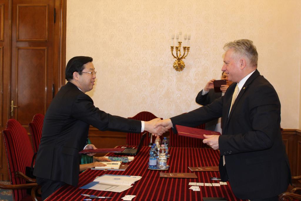 在匈牙利,刘利校长与罗兰大学校长László Borhy教授就两校合作的领域和方向进行了友好交流,并签署了两校合作备忘录。罗兰大学创建于1635年,是匈牙利最富盛名的大学。与罗兰大学建立合作关系对于我校今后开展学生交流和学者互访等都具有积极的意义。代表团与我校校友、现任罗兰大学国际事务副校长、孔子学院外方院长郝清新(Imre Hammar)教授进行了会谈,研讨了两校合作的具体模式和途径。代表团随后访问了罗兰大学孔子学院,了解了目前匈牙利汉语国际教育的进展情况,与中方院长李期铿,以及罗兰大学中国关系部主任、欧洲汉语教学协会副主席叶秋月女士,就欧洲地区汉语教学整体形势进行了分析。代表团一行还拜会了罗兰大学与匈牙利科学院双聘教授、著名语言学家Marcel den Dikken教授及罗兰大学理论语言学系Éva Katalin Dékány教授。