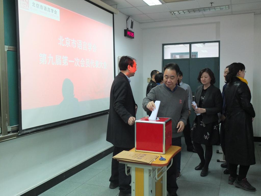 教育部语言文字应用研究所郭龙生研究员代表第八届监事会作了工作报告,监事会认为上一届理事会的各项活动、财务状况均未见任何违规、违法行为,并对新一届理事会提出了新的希望。大会听取并审议通过了上述报告。北京市语言学会第八届理事会副秘书长关辛秋教授宣读章程修改草案,并审议通过。邢红兵教授宣读了《北京市语言学会换届选举办法》及总监票人、监票人、计票人名单,并经大会审议通过。大会以投票选举的方式产生了新一届理事会和监事会,选举过程由总监票人王治敏教授主持。