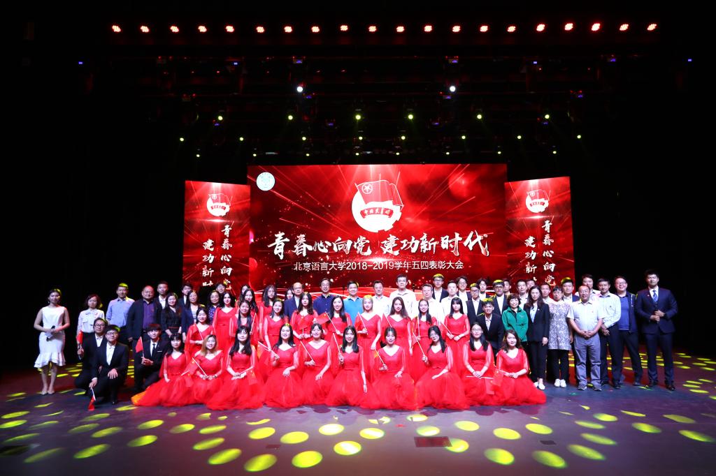 5月9日晚,为纪念五四运动100周年、表彰先进青年典型,北京语言大学“青春心向党 建功新时代”五四表彰大会于梧桐会堂隆重举行。团中央宣传部思想政治处副处长高亮、海淀团区委书记文思君、团中央宣传部思想政治处周巨岩受邀出席大会。校党委书记倪海东、副书记马贵生、副校长黄益方、校长助理郭鹏莅临现场,各职能部处负责人、各学部(院)学工队伍及全校受表彰群体、教师代表、学生代表及现场观众共计一千余人参加大会。