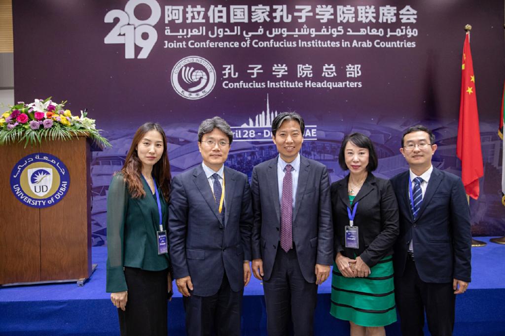 4月28日,孔子学院总部首届阿拉伯国家孔子学院联席会在迪拜大学成功召开。中国驻迪拜代总领事谭理、孔子学院总部副总干事郁云峰、阿联酋教育部助理次长哈马德·叶海亚、迪拜大学校长兼孔子学院阿方院长艾萨·巴斯塔基博士、阿拉伯国家各孔子学院中外方院长以及师生代表共80人出席。我校副校长张宝钧、国际教育管理处处长/孔子学院工作处处长陈丽霞出席本次大会。