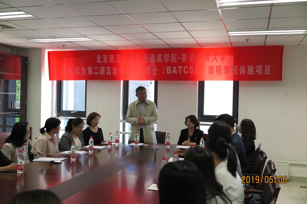 5月6日上午,由汉语速成学院承办的香港教育大学汉语作为第二语言教学荣誉文学士(BATCSL)课程学校体验项目举行了隆重的开班仪式。汉语速成学院副院长郭晓麟,项目部主任刘丽艳,导师代表,香港教育大学周立以及26名学员和中国学生志愿者参加了本次开班仪式。开班仪式由项目部主管李蕊主持。
