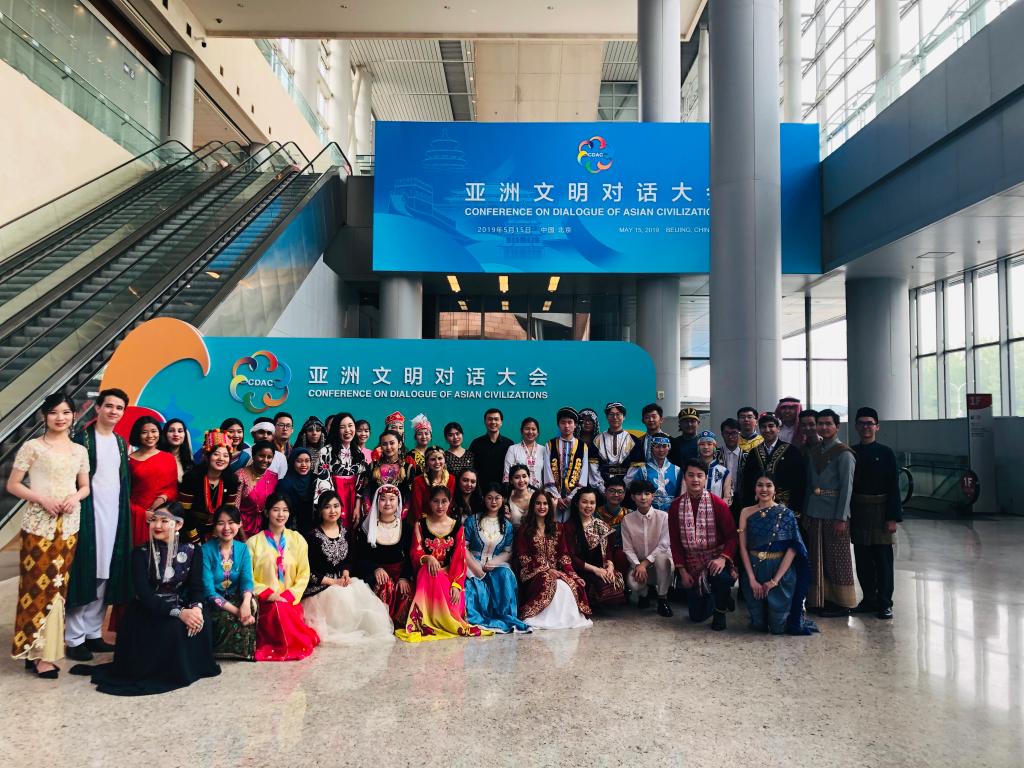 候场期间,受邀参会的张宝钧副校长特别为我校中外学生加油打气,并和同学们合影留念。泰国前副总理功·塔帕朗西、印度尼西亚驻华大使乔哈里等纷纷到场慰问我校同学,勉励学生们在北语要努力学习,并对北语悉心培养学生表示衷心的感谢。来自印度尼西亚的国际学生佘政轩表示,很荣幸能够在维护亚洲文明多样性的论坛上代表北语为来自亚洲各地的客人们带来演出;来自不丹的国际学生桑加学习汉语刚刚半年的时间,他非常高兴能够在开幕式上展示自己国家的风采,并希望今后能够真正掌握汉语,可以多为亚洲文明交流互鉴贡献一己之力。