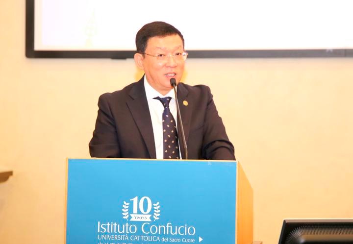 马箭飞副总干事强调,十年风雨兼程,在米兰圣心天主教大学校长的领导下、在中意方院长、各位公派教师、本土老师和志愿者的共同努力下,在米兰、伦巴第大区社会各界的支持下,米兰圣心孔子学院作为全球最有特色的孔子学院之一取得了令人瞩目的成绩。不久以前,中国的国家主席习近平访问意大利,同意大利领导共同规划了中意两国关系的蓝图,引领中意关系进入了新时代。他相信在校长阿奈利(Franco Anelli)的领导和中意双方的共同努力下,圣心孔子学院能够为中意各个领域的交流合作做出更多的贡献。