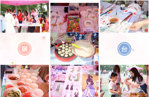 此外,由十数个展台构成的展台区域同样是无比热闹,令人目不暇接。手工饰品、手工彩绘、手工结艺等手工制品的展台,向大家展示了手工艺的美妙及实用性,大家都对这些富有创意的小玩意赞不绝口。当然,“包装马车”、“盛夏白瓷梅子汤”、“解馋杂货铺”、“ICE-FAN”等以饮食为主题的特色展台也人气爆棚,特色美食浓郁的香味和精致的卖相让食客们流连忘返。“霓衿-汉服文化体验”和日本文化体验区也是别开生面,琳琅满目的汉服,人人夸赞的章鱼小丸子,抹茶的苦涩和羊羹的甘甜,让我们感受到了文化的交流、融合与碰撞。