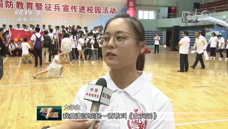 军乐演奏激昂震撼,队列展示整齐划一,仪仗操枪精彩纷呈,充满血性和杀气的特种兵格斗更是让同学们叹为观止。近距离感受了新时代人民军队的风采后,同学们热血沸腾、气贯长虹,进一步坚定了自己携笔从戎、报效祖国的远大理想。同时,来自我校18级汉语国际教育专业的高媛、18级国际事务与国际关系专业的丁晓娟两位同学接受了中央电视台记者的采访,在镜头在展示了北语学生的家国情怀和热血。“带着五彩梦,从军走天涯。把祖国和人民的寄托扛在肩上,这就是我们大学生携笔从戎的意义”,丁晓娟同学的采访为中央台选用,于5月11日晚中央七套的《军事报道》栏目中播出。