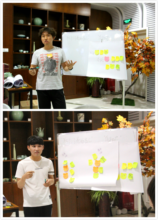 为了能更深入地了解同学们在跨文化心理适应中个性化的经历和困惑,也为了促进中外学生的进一步交流,在心理中心老师们的带领下,同学们分为“取个闪亮的名儿”和“白牡丹”两个小组讨论跨文化适应困难与应对。通过对每位同学所遇困扰的收集和分类,各小组分别整理出其在跨文化适应中所遇问题的不同类型,其中包括时间观念、饮食差异、宗教难题、人际障碍、情绪困扰等。在分类整理的过程中,同学们对自己的处境更加清晰,目标也因此更加明确。