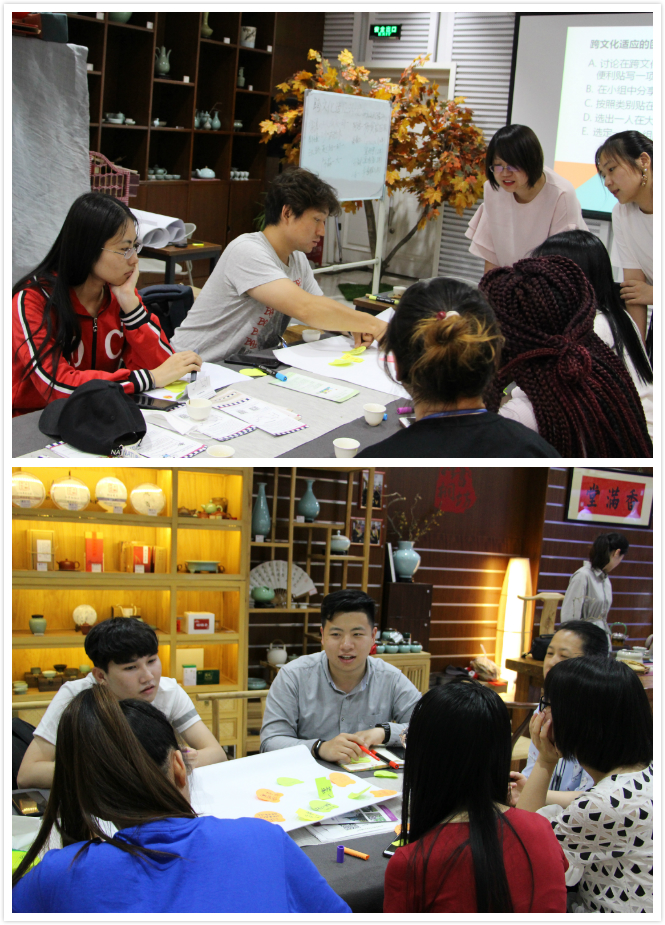 在分组活动中,同学们不仅对自身所遇问题进行了梳理和表达,还获得了另一组同学对本组成员最关心问题的解答和建议。经过热烈的的讨论和精彩的分享,同学们总结出在面对因不了解对方的文化而产生误解的情况时,要以尊重、包容和开放的态度与对方主动沟通、及时从自身积极调整,从而能够彼此理解、和谐共处。无论是在跨国、跨地区还是跨民族的文化交往中,这种态度和沟通方式在人与人的相处中都是必要和相通的。