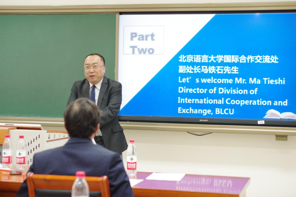 北京语言大学国际合作交流处副处长马铁石祝贺学员们顺利完成学习,并对项目所有支持和参与者表示衷心感谢。马铁石肯定了语言学习在新时代的重要作用,并将其划分为逐层递进的四个阶段。语言关乎文化间的互联互通,马铁石鼓励同学们在现有水平上继续努力,向更高阶段的学习迈进,进一步体会中国的“和”文化。马先生表示,此次项目提供了一个契机,期待将来在此平台上,充分把握学校已有条件和优势,开展深度的师生交流项目,增进两国人民之间的相互了解和文化交流。