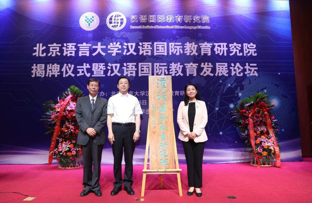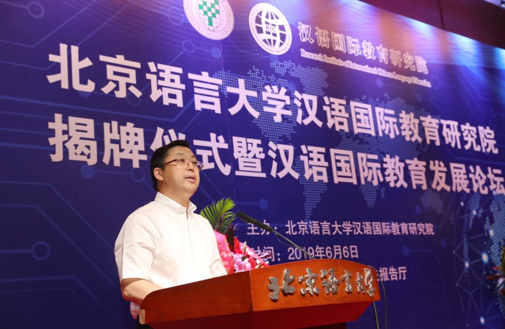6月6日,北京语言大学汉语国际教育研究院揭牌仪式暨汉语国际教育发展论坛在逸夫楼报告厅隆重举行。全球首家汉语国际教育研究院挂牌成立。北京语言大学校长刘利教授、孔子学院总部党委副书记于天琪、北京大学陆俭明教授、汉语国际教育研究院院长崔希亮出席揭牌仪式并讲话,副校长张旺喜主持揭牌仪式。