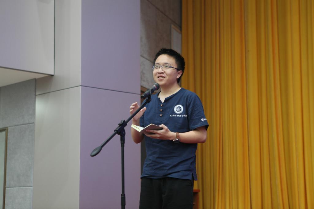 张阳老师首先介绍了举办毕业生大会的初衷和本次大会的流程。随后,本研优秀毕业生代表依次上台发言。硕士毕业生代表、2019届国际政治专业曹国良同学讲述了他在人文的八年,致敬了人文优秀的老师们,也表露了对人文的留恋与不舍。本科生毕业代表、2019届汉语国际教育专业张世霖同学以幽默风趣的语言,讲述了他从进入北语到在人文学习四年来的心路历程,他感谢并珍惜在这里的每一次相遇。两位同学的发言不仅表达了对大学生活的依恋,也充满着对未来的规划与展望。“明日隔山海,世事两茫茫。”望各位千万珍重。