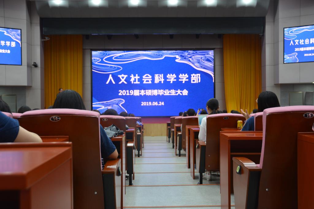 6月24日下午,人文社会科学学部2019届本硕博毕业生大会在主楼209报告厅准时开始,大会由学部党委书记张阳老师主持。出席此次大会的还有人文社会科学学部主任程娟,学部副主任、汉语教育学院院长施家炜,人文社会科学学部副主任、新闻传播学学院院长云国强,人文社会科学学部副主任、国际关系学院院长贾烈英,人文社会科学学部党委副书记卜晨光。学部各学院任课老师代表、教务办学办老师也应邀参加。