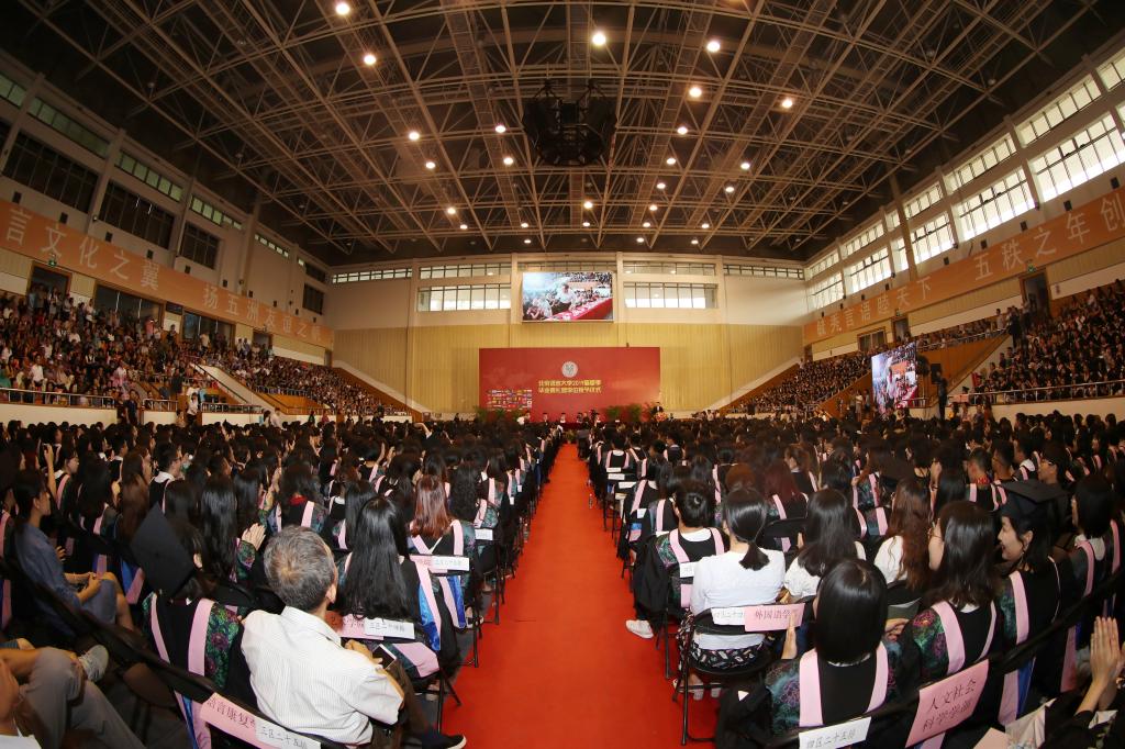 勿忘奋斗,澎湃学子心;不负韶华,奔赴新征程。6月26日上午,逸夫体育馆里,身着学位服的中外本科毕业生与亲朋好友和恩师们,共同参加北京语言大学2019届夏季毕业典礼。党委书记倪海东、校长刘利,党委副书记马贵生,副校长张旺喜、副校长黄益方以及乌拉圭东岸共和国、缅甸联邦共和国、马来西亚、大韩民国、越南社会主义共和国、墨西哥合众国等国驻华使馆嘉宾出席毕业典礼,与毕业生们共同见证这一重要时刻。