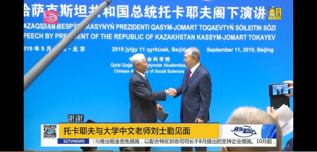 10号中午,突然接到中国社科院和哈萨克斯坦大使馆送来的请柬,邀请我11号莅临托卡耶夫总统阁下的演讲会。顿时喜形于色。11号10点多钟,我和刘利校长抵达社科院学术报告厅门外,先把备好的礼物交给哈方大使馆参赞,请他转交给托卡耶夫总统阁下。