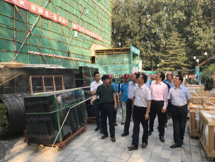 校领导首先检查图书馆升级改造项目,由施工单位北京城建亚泰建设集团董事长曹国章、党委书记潘寿林等集团公司领导对工程进展、总体施工计划及现场安全文明生产措施分别进行介绍,并表达在安全生产大前提下保质保量如期完成该项目的决心。倪海东书记肯定了北京城建亚泰建设集团的工作,并表示图书馆装修改造备受全校师生关注,各单位一定要通力合作,将图书馆升级改造项目打造成为北京语言大学精品工程项目。随后,倪海东书记慰问现场管理人员、施工人员,并表达对他们在施工过程中艰辛劳动的感谢。