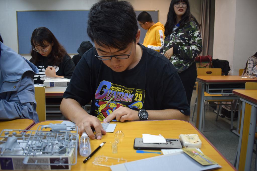 在军协同学的入门介绍与指导下,老师与同学们一起开始动手做模型。大家结合刚刚所学知识,积极讨论,互相帮助,在军协和手工社成员的帮助下克服困难顺利完成模型制作,现场气氛其乐融融,大家在充分享受飞机模型动手制作的过程中,也收获了模型背后的军事知识。学生处处长黄展、校团委书记杨天乔、副处长张洋等也参与了活动。