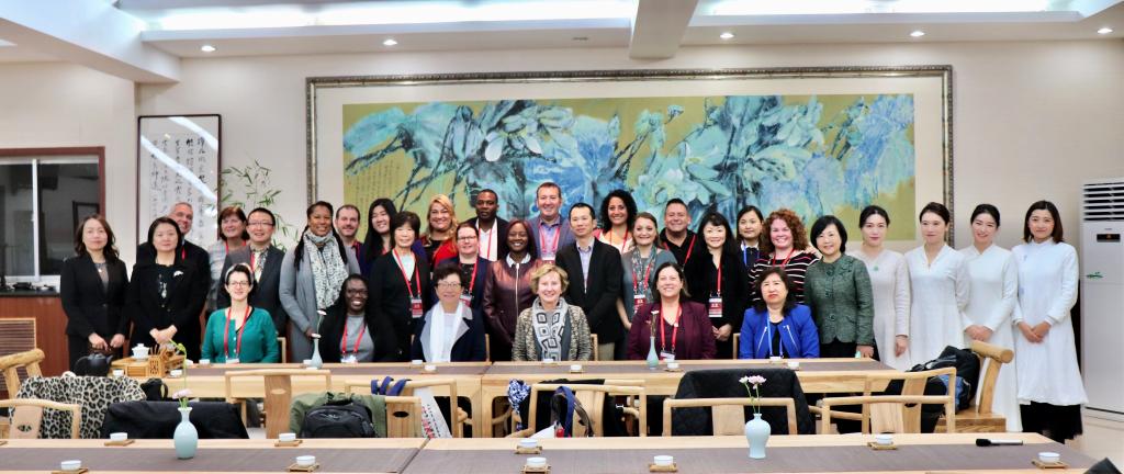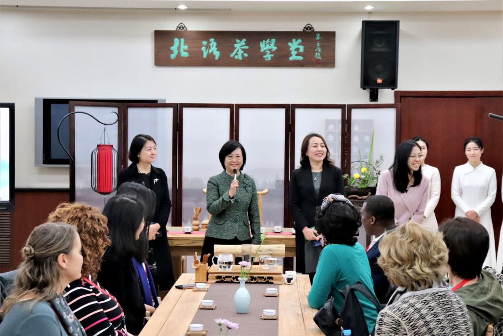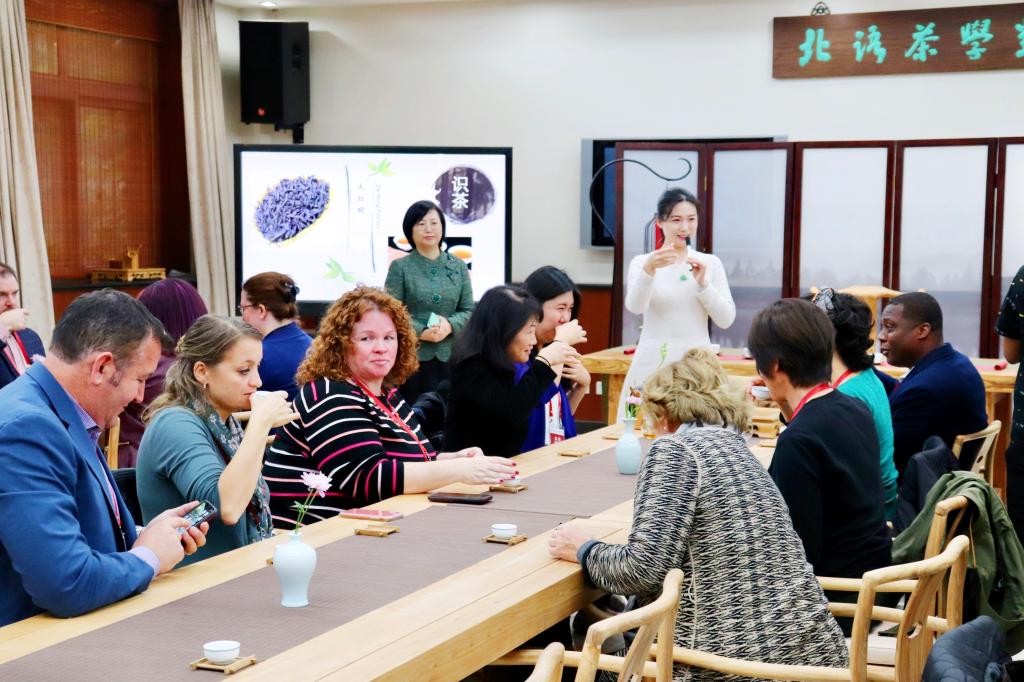 10月28日上午,由孔子学院总部与美国大学理事会共同主办,北京语言大学承办的2019“汉语桥——美国校长访华之旅”项目的30多位美国中小学校长走进了北语茶学堂,观摩体验了北京语言大学中华文化国际传播中心及汉语速成学院于璐老师的中国茶文化体验课。