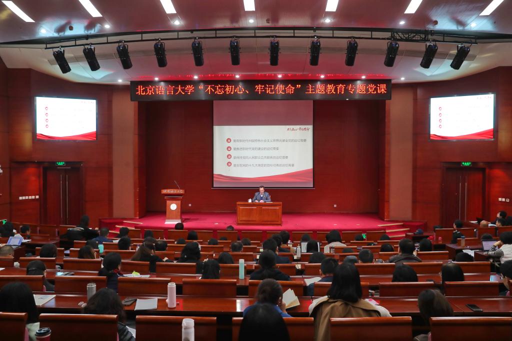刘利校长的党课《中国共产党的初心与北京语言大学的使命》围绕“什么是中国共产党的初心”,“习近平总书记关于教育的重要论述”,“新时代北语的使命”,“检视问题、寻找差距”,“深化改革、推进发展”五个方面,深刻论述党的初心和北语的使命之间的内在关联。他认为,北语是中国高等教育的重要组成部分,北语近60年的全部办学实践,都是在党的教育方针指引下,为我们党办好人民满意教育的奋斗史,都是我们党为实现人民对美好生活的向往而努力奋斗的一部分。学校第九次党代会提出的奋斗目标是新时代北语的使命,也是体现党的初心、实现党的使命的一个重要组成部分。