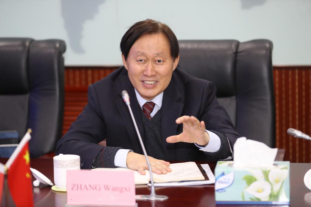 张旺喜副校长代表北京语言大学,对清迈皇家大学代表团的来访表示热烈的欢迎,并向来宾们简要介绍了北语校史、教学近况以及对外办学情况,特别是与泰国各高校的交流合作情况。他说,中泰两国自1975年建交以来,在科技、教育、文化等领域的交流与合作稳步发展。两国一衣带水、睦邻友好的大环境、一带一路倡议的大背景,为两校建立合作关系、深化各项合作奠定了基础。两校虽在很多方面有所不同,但在培养适应新时代需求的精英型和通识型国际人才,在深化中外人文交流、推进世界多元文明互学互鉴的目标与理想上十分相似。他希望此次会谈能够细化两校于今年早先时间签署的合作备忘录中的条款,积极推进,尽早落实落地,为两校师生带来更多的文化互鉴、交流互访的机会。
