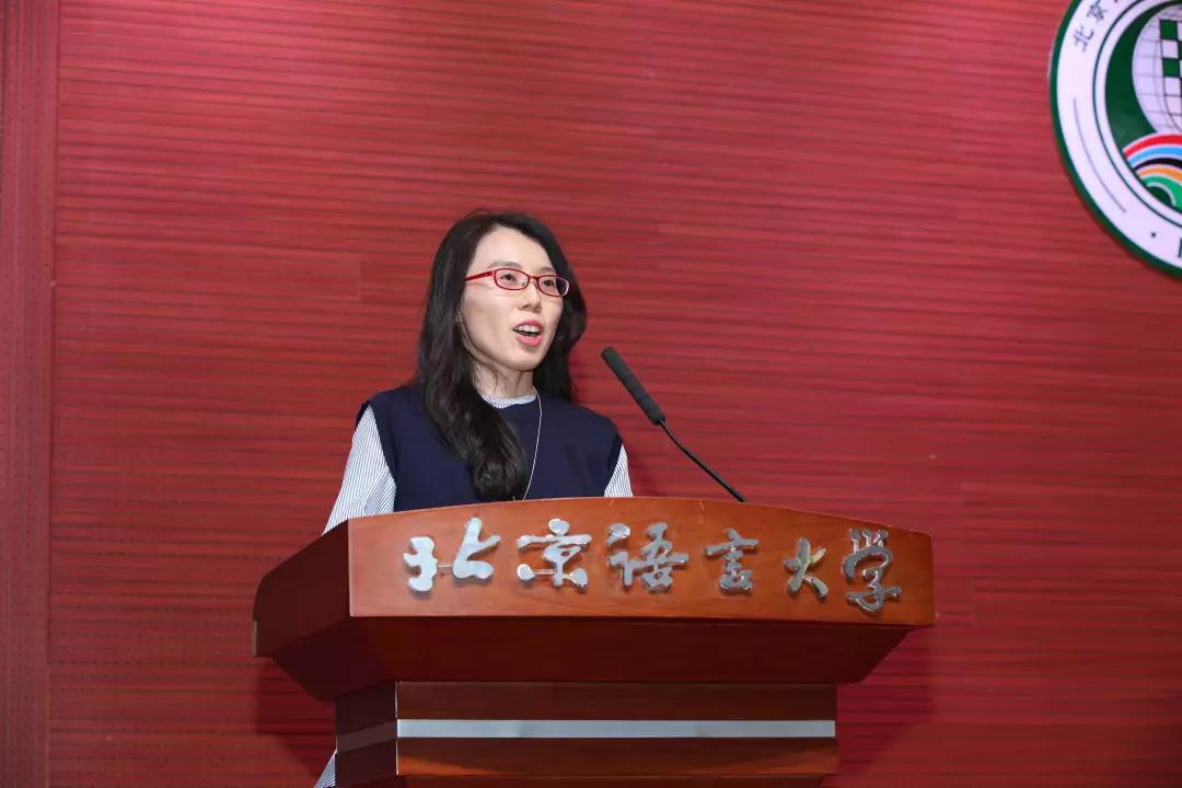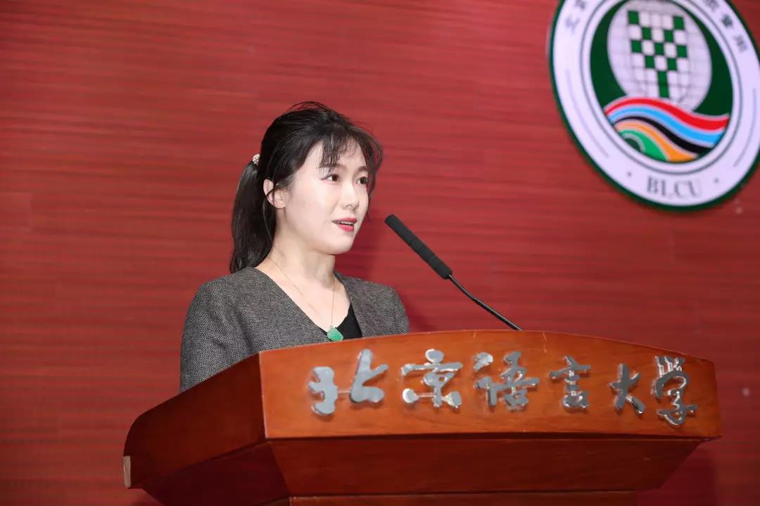 北京语言大学第十三届优秀教学奖一等奖获得者、汉语国际教育学部青年教师于璐老师声情并茂地讲述了自己参赛的心路历程,感谢学校和各位领导、老师对青年教师的支持和帮助以及每一位学生的配合和理解。于老师阐述了她对教师的自我要求,“教师需要有演员的亲和力,也需要有匠人的耐心和毅力”,“获得奖项,不是开始,更不是结束。要为成为更优秀的北语人继续努力拼搏”。