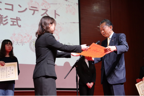 鸠山由纪夫先生为同学颁奖