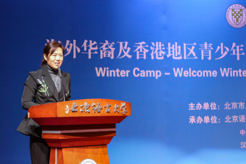 北京市人民政府侨务办公室侨政处处长李晓菲代表主办方向承办方北京语言大学、海外中文学校的老师、领队,香港侨界社团联会副会长余伟杰先生及所有营员都表达了衷心的感谢。她表示,北京语言大学一切从大局出发,在不到一个月的短短时间里高效高质量地筹备本次冬令营,彰显了北语师生具有的教学底蕴、高效作风、团队合作、拼搏精神和辛勤付出;海外中文教师是中文和中华文化在海外传承的“灵魂工程师”,他们帮助中华文化之根在海外青少年一代扎根并传承下去;余伟杰先生率领在香港的华侨青少年来到北京参加冬令营也具有重大的意义。她对所有营员的到来表示欢迎,并祝愿大家能在冬令营中得到不一样的体验和感受。