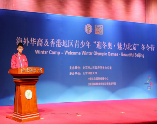 北京语言大学中华文化国际传播中心主任迟兰英在致辞中介绍了作为承办方为成功举办本次冬令营所做的各项准备工作,以及量身打造的课程和参观体验模式。她表示,中华文化国际传播中心和汉语速成学院将用40余年的教学优势和优秀的学术传统,确保本次冬令营能够办出特色、办出水平、办成品牌。她殷切地希望各位营员充分利用冬令营多听、多看、多想、多交朋友,在了解奥运知识、奥运精神的同时,了解北京古老灿烂的历史文化和精神风貌,感受当代北京新的魅力与活力,感知中国日新月异的发展变化,并通过参与体验,了解和感知博大精深的中华文化。她真诚地欢迎并期待大家2022年能来北京观看冬奥会并继续来北语深造学习。