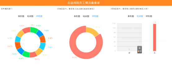 一是建立每日信息报送与盯防网络制度。为保证疫情防控工作的有序管理,学院应用“防控信息报送小程序”,建立每日疫情信息报告制度,以部门为单位做好疫情盯防工作,切实做到对于本部门内员工每日身体状况、赴外地状况、途径状况、返程状况、自我隔离状况等的充分了解。