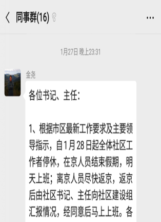 1月27日正月初三,北京语言大学社区党支部书记兼居委会主任金尧在深夜接到紧急通知。一声令下,全体社工次日全员到岗,就此打响了“新冠肺炎”疫情防控持久战。