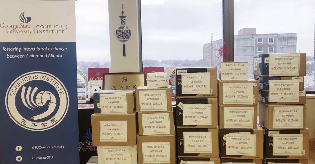 佐治亚州立大学孔子学院位于佐治亚州亚特兰大市,与中国有十三个小时的时差,但是牵挂祖国的心却没有时差。近来,孔院的每周例会都会特别关注中国疫情的进展,孔院中方院长朱姝博士和外方执行院长金伯利·亨肖(Kimberly Henshaw)女士积极组织募捐活动。此次孔院内部共筹得资金约合16000余元,孔院将善款用以采购口罩、一次性防护服、手套防护镜、脚套等国内十分需要的医疗物资。所有物资主要捐赠给位于疫区的华中农业大学校医院及北京语言大学校医院及社区,为校园送去更多的保障。来自北京语言大学的公派教授陶小红老师得知孔院开展募捐活动后,毫不犹豫地抢先捐出1200美金,令人感动;美国各大药店及网站的口罩都已脱销,赵果老师将之前好不容易买到的一包医用口罩也捐赠了。其次,孔院联合外部力量募集医疗物资,制作了约二十个物资捐赠箱并附上所需物资的具体标准,以期所有捐赠的医疗用品符合当前形势所需。然后由孔院工作人员每个人负责两到三个箱子,分工送到同意接收的佐治亚州立大学各个部门,固定时间上门收回募捐箱中的物资,收到了校园的学生和其它朋友捐赠的一次性手套还有口罩等物品,每一件物品都传递着一份真诚的匿名的爱。目前筹集到的第一批物资已经于2月14日送往国内。