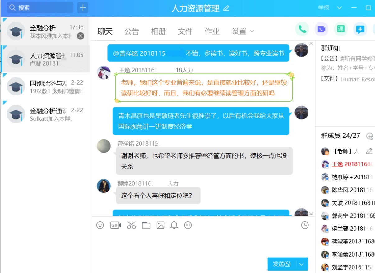 考虑到各大学同时开学网络平台负载压力,为更好地做好线上教学预案,老师们同时利用QQ群、微信群、钉钉群、腾讯会议等即时沟通软件,通过视频会议、语音(PPT)直播、线上自学+讨论答疑等形式进行文件、图片、音视频互动,保证了线上第一天的平稳开学。