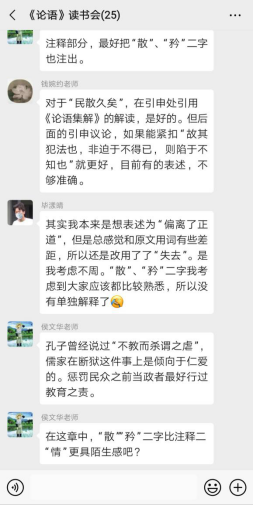 这些日子,武汉方舱医院卧病在床仍手捧书本的青年登上了头条,说明疫情之下国人逐渐体会到阅读带来的精神力量,正可以与苦难相对抗,读书会师生对章句的解读,也更添了几分知行合一的色彩。2月12日,钱婉约老师就《论语•子张》中的一则说与读书会的同学们:“在读书时要始终不忘慎思明辨,相信自己,不要迷失自己的判断力。”特殊时期,别样凝聚,三位老师正是以伴读的方式守护着学子的精神家园,以数千年以来的精神力量,滋养着学子的心灵。