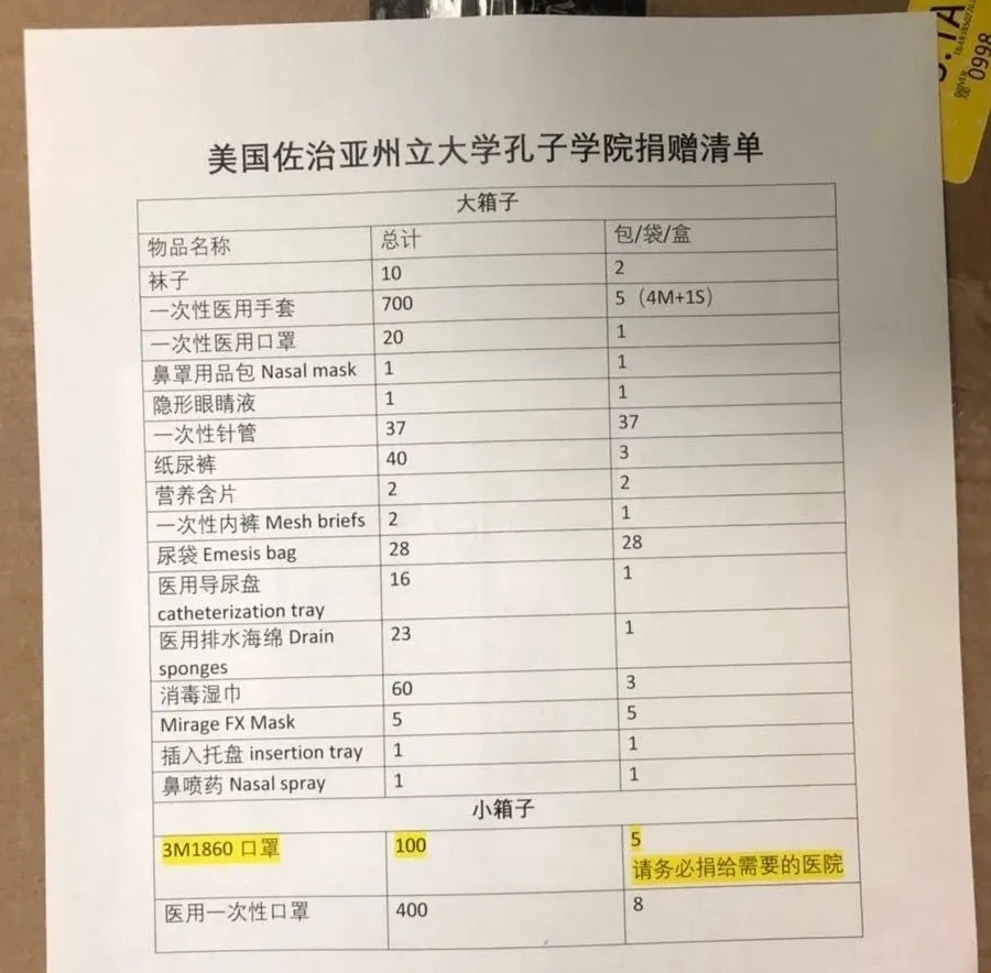 继2月14日第一批物资寄出后,佐治亚州立大学孔院又陆续收到了一些来自孔院友人的热心捐赠。从二月中旬到三月初,一些孔院友人通过社交媒体看到我们的募捐活动后,积极参与了我院的募捐活动。