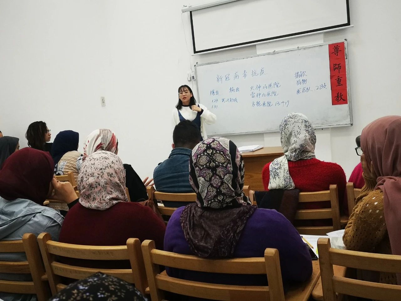 首日“小课堂”于2020年3月1日分别在苏伊士运河大学语言学院三年级和文学院四年级共两个中文班展开,约80名师生参加。张廷洪老师为同学们科普了病毒的主要传播途径,介绍了 “勤洗手”、“房间通风”、“佩戴口罩”和“不去人流拥挤处”等七项个人防护措施,并示范口罩的正确佩戴方法。赵爽老师讲述了本次疫情的发生和传播过程,重点介绍了中国政府的积极应对方法,比如武汉火神山和雷神山医院的建设,小区的居民管理和物资的调配等等。赵老师罗列了目前疫情在世界各国的爆发情况,尤其是距离埃及较近的中东和欧洲地区,让所有学生都提高了警惕,意识到埃及当下面临的严峻形势,同时也明白了这场疫情不是一个国家的事,而是全世界共同面临的难题,只有大家团结一心才有希望取得抗疫的胜利。