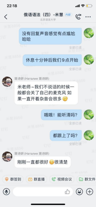 由于外国语学部各国语言类课程的特殊性,需要锻炼学生们“听、说、读、写”的能力,针对如何合理应用北语慕课、学习通、钉钉、qq、微信群等线上教学平台的问题,外国语学部的老师们经过了开学一周多的演练,总结了线上教学的经验和感悟