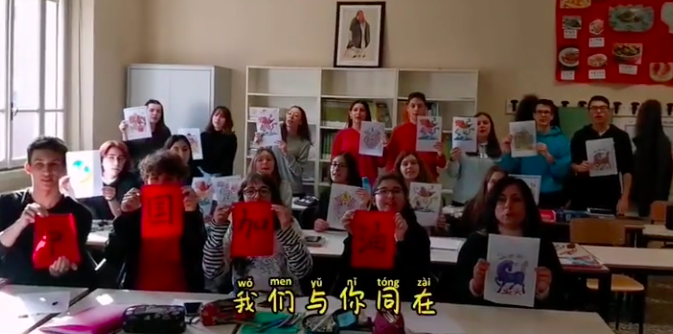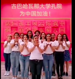 孔子学院的学生们也纷纷用自己的方式祝福武汉、祝福中国。日本枚方市日中友好协会副会长榊原启雄先生在孔子学院学习汉语已达五年之久,他特意通过孔院写了一封信表达关心;古巴哈瓦那大学孔子学院合唱团专门录制《让世界充满爱》为中国加油;意大利米兰天主教圣心大学孔子学院设置留言墙,墙上写满了院长们和学员们的关怀与鼓励;还有来自罗马尼亚锡比乌大学孔子学院的学生们、莫斯科国立大学、泰国清莱府攀县中学汉语专业、泰国博仁大学等等学校特别录制视频或制作海报,积极向中国传达问候。此外,从北语赴外汉语教师、志愿者培训班走出的学员们,在元宵节当天,特别以视频和文字的方式向祖国报平安、送祝福。