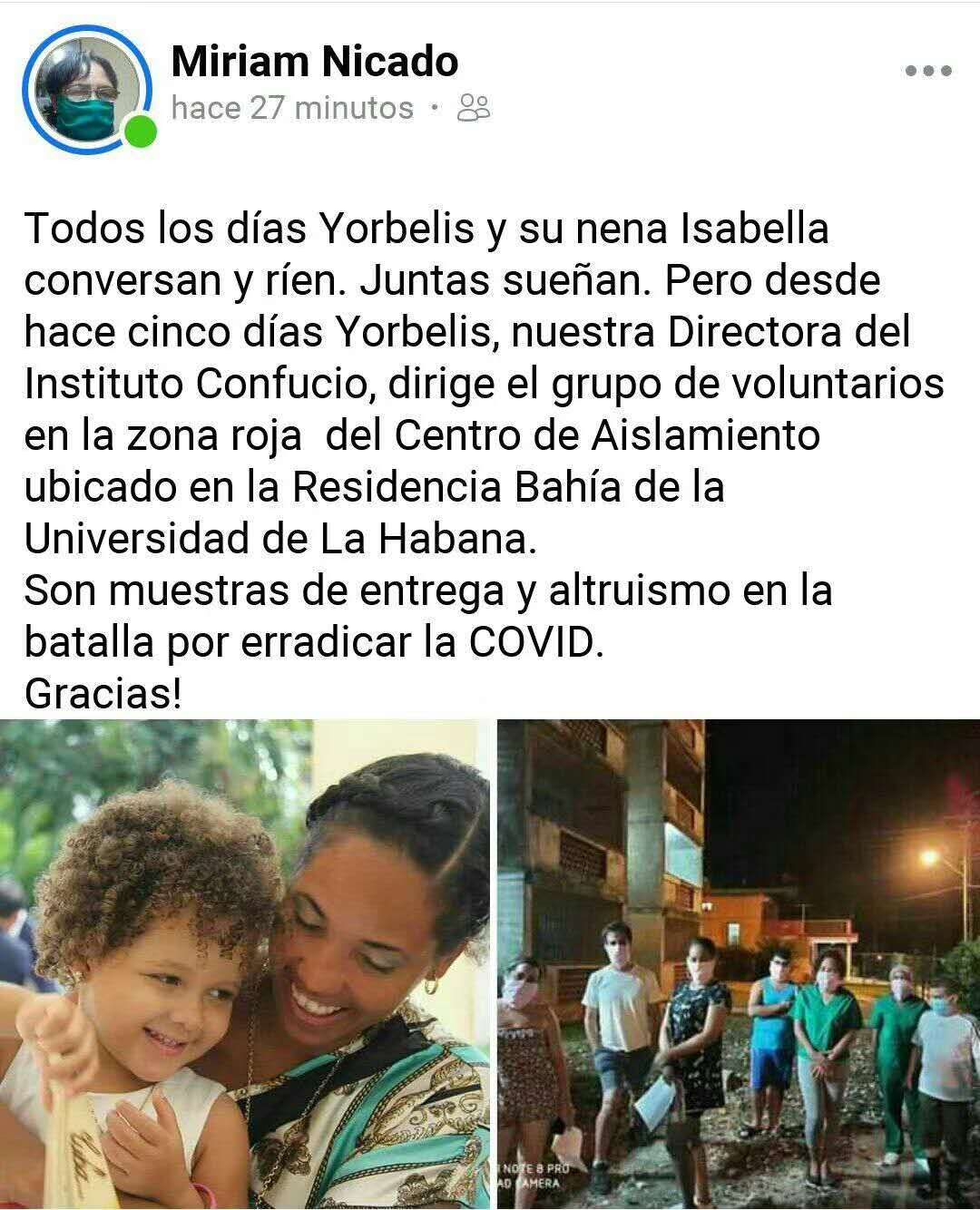 尤贝里斯此前表示:“参加志愿服务内心是忐忑的,因为有被感染的风险,但是同时又是自豪的,为自己能够向现在的古巴付出一点力量而感到骄傲。