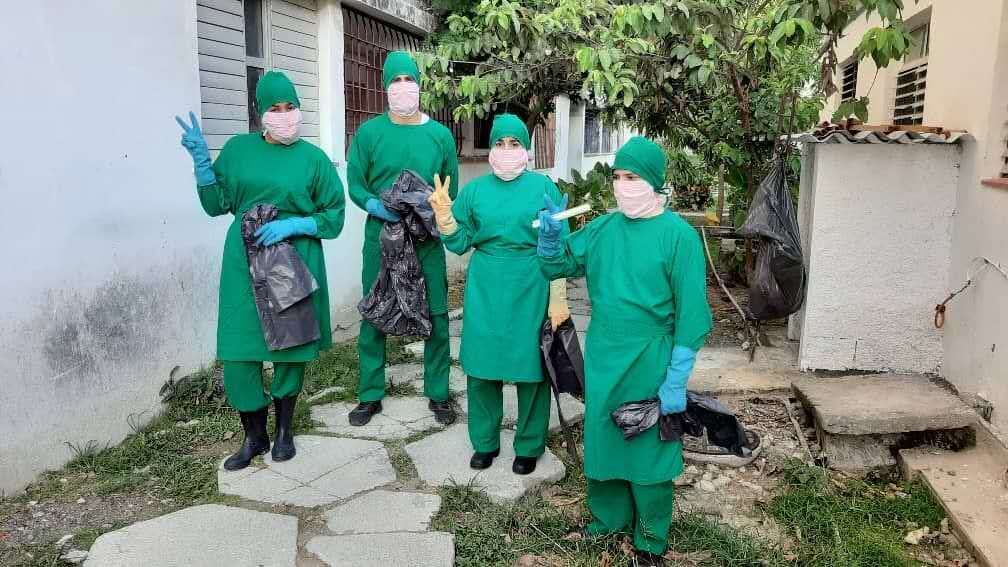 由尤贝里斯率领的志愿服务团队,共有8名队员,工作地点在哈大residencia bahia片区一个隔离中心重点区域,工作内容主要是后勤服务,负责隔离区的餐饮及清洁,每天需全副武装工作8-10小时。其中,孔院本土汉语教师Daianah Liao(戴安娜)和孔院电教负责人Osvaldo Hernandez(奥斯瓦尔多·赫南德兹)每隔三天需要接触一次隔离病人。尤贝里斯院长虽然不直接接触病人,但是作为志愿团队管理者,每天需要工作14个小时。尤贝里斯等志愿服务人员用别样的方式为全体孔院师生及古巴社会各界民众打下了一剂强剂,相信古巴一定会战胜疫情,重焕生机。