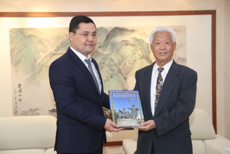 托卡耶夫总统当年在北语学习时的教师刘士勤教授、校办主任李志坚、国际合作与交流处处长马铁石、宣传部常务副部长展明锋、校友办主任马小垒等参加了会见。