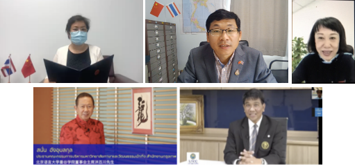 开班仪式由北京语言大学国际教育管理处/孔子学院工作处处长、孔子学院教师培训中心主任陈丽霞主持,中国驻泰王国大使馆一等秘书宋若云女士、孔子学院总部驻泰王国事务代表王会昌先生、北京语言大学曼谷学院董事会主席洪百川先生、泰国商会大学校长Thanawat Polvichai博士出席开班仪式并分别致辞。各方表示,在新冠肺炎疫情下,两国人民守望相助、共克时艰,彰显了血浓于水、亲如一家的传统友谊。近年来泰国中文热持续升温,本土汉语教师队伍规模不断扩大,本土汉语教师培训有助于解决泰国汉语学习需求日益增长与汉语师资供给有限的矛盾。希望北京语言大学能够利用自身在汉语教学领域的优势,把泰国本土汉语教师培训打造成为国际中文教育的品牌项目,为两国宽领域深入合作提供更加有利的人力资源支撑。