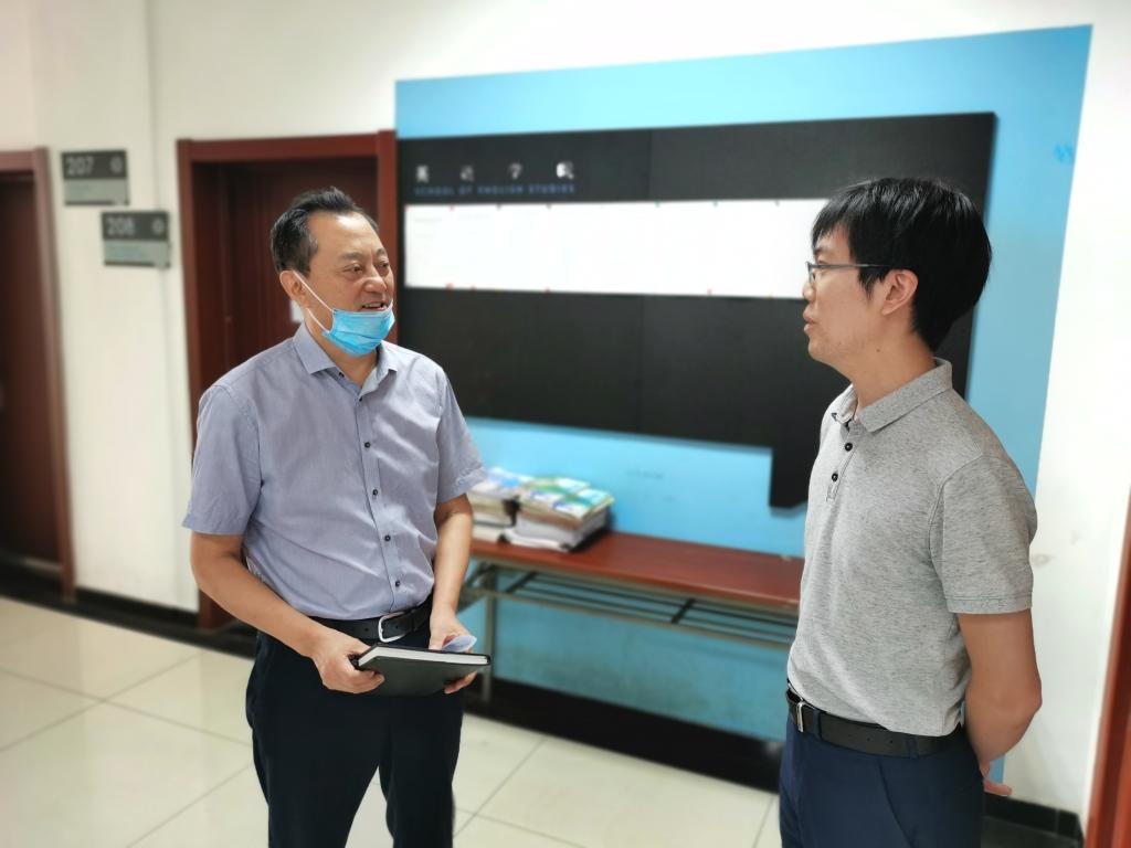 9月2日下午,刘校长首先到教四楼查看了教四楼教室师生上课情况,并到人文社会科学学部教务办公室和学生办公室看望了忙碌中的青年教师,了解了学生返校报到、注册情况,人文社会科学学部有关工作负责人简要介绍了学部开学初教学准备和教学安排。随后,刘校长来到教一楼八层,通过视频系统查看了全校各教室的上课情况,并听了汉语国际教育学部、外国语学部、人文社会科学学部、信息科学学院、商学院、马克思主义学院等教学单位老师的课,全面了解了开学初各单位师生的课堂教学秩序和课堂上疫情防控情况,对信息科学学院罗智勇等多位老师的课及全校师生的开学第一周的精神面貌给予了高度肯定并对检查中发现的问题提出了改进意见。
