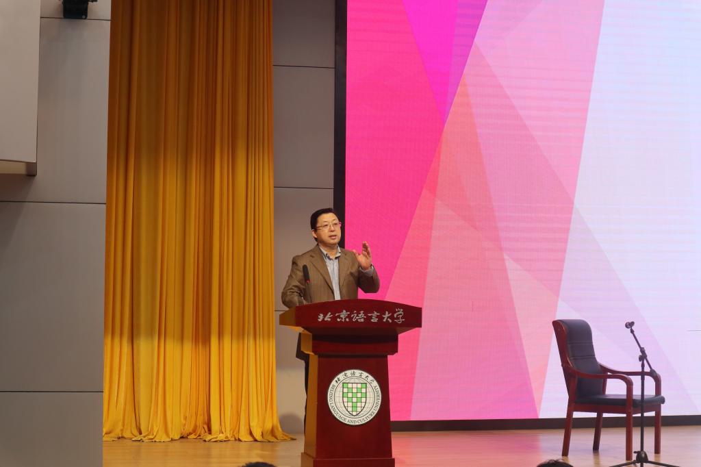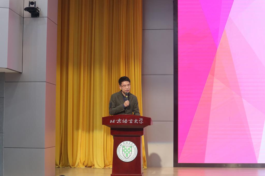 中国翻译协会(TAC)口译委员会秘书长詹成感谢北京语言大学为举办此次线下活动所付出的努力,并就此次大赛的主题及语言服务行业的现状与前景发表了自己的看法。他希望译员能够继续为自己所在的行业贡献更多的力量,并期待明年再次与各位相聚北语。