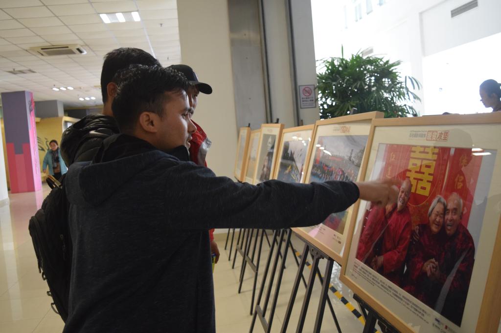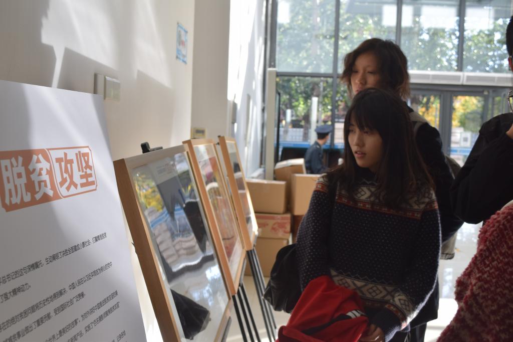 布展当日,展览吸引了我校众多中外师生驻足欣赏。“架桥修路扶贫”、“农业种植扶贫”、“改善医疗条件”、“发展生态旅游”、“驻村干部走访”……展现着群众生活真实的变化,脱贫路上真心的笑容,一帧帧珍贵图片撞击着师生的心灵,升华着师生的爱国情感,也为留学生提供了了解新中国脱贫攻坚的鲜活教材。
