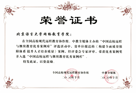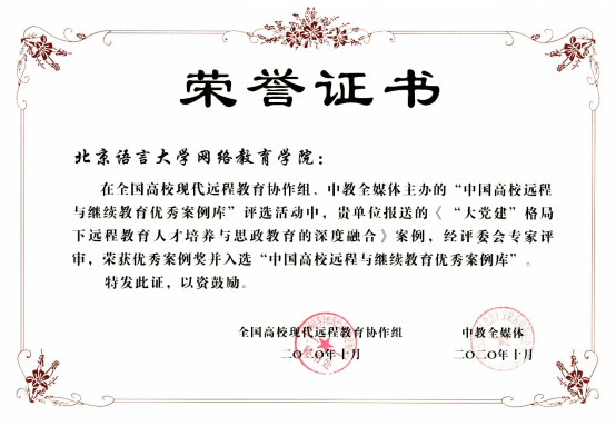 近日,在由全国高校现代远程教育协作组、中教全媒体共同主办的第五届“中国高校远程与继续教育优秀案例库”征集活动中,我院报送的《“大党建”格局下远程教育人才培养与思政教育的深度融合》《构建全面质量保障体系 提升人才培养质量》《远程教育助力高校跨境合作 推动汉语国际教育创新发展》三篇案例入选“2020中国高校远程与继续教育优秀案例库”。参与此次评选的全国各类案例450余篇,经过专家初审、互审,专家讨论,共评选出120余项具有代表性优秀案例。