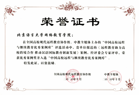 《远程教育助力高校跨境合作 推动汉语国际教育创新发展》介绍了我院的远程在线汉语课程(BJU项目)项目。项目创新了学分转换机制,我院与鲍勃琼斯大学通过双边协议的方式对在线汉语课程类型、教学大纲、教学模式、师资配备、学生成绩单以及学习资料交接等方面做出细致的规定,鲍勃琼斯大学直接认定学生在北京语言大学在线学习所获的学分。项目融合了汉语国际教育与远程教育双重属性,探索出了一条较为成功的中国特色的远程跨境优质教育资源的输出模式。