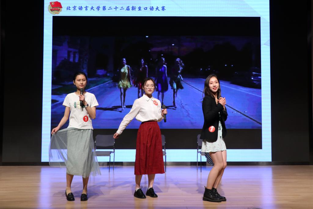 新航道教学总监陈赫、新航道英联邦考试院院长戴峥、北京语言大学外国语学部应用外语学院刘瑛、北京语言大学外国语学部应用外语学院曹泽煌担任本次大赛的评委。在Buster Crew街舞社表演完一段富有力量的开场舞后,现场气氛活跃起来,大家都翘首期待此次新生口语大赛。