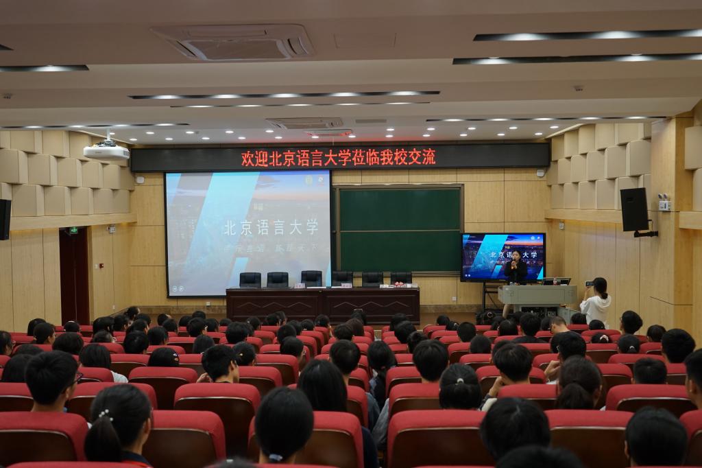柳州铁路第一中学(柳东校区)的招生宣传工作采取了现场宣讲和互动答疑的形式。招生宣传组林建萍副组长与谢志规副校长就两校合作进行了交流,双方签署协议并举行授牌仪式。随后,玄铮作为主讲人,向百余名高二学生就北语的校史校情、办学优势、培养特色、专业设置、校园生活及最新招生政策等方面作了介绍。报告内容详实、条理清晰,受到当地师生的欢迎。在自由交流环节,同学们就专业选择、小语种学习、专业差异等问题进行了提问,招生宣传组一一作出了详细解答,并赠送了北语招生纪念品,现场气氛十分活跃。有学生在会后表示“对北语心生向往,会继续努力,争取能够考上北语。”招生宣传组向其表示了欢迎和感谢,并期待将来能在北语的校园再次相见。